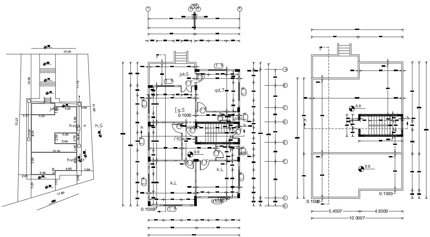 Bungalow Plans Working Detail AutoCAD File Free Download; bungalow planning with basic working dimension, centerline, door detail, and window detail. in this drawing living room, bedroom, kitchen, dining room, bathroom, toilet, entry, garage, etc.