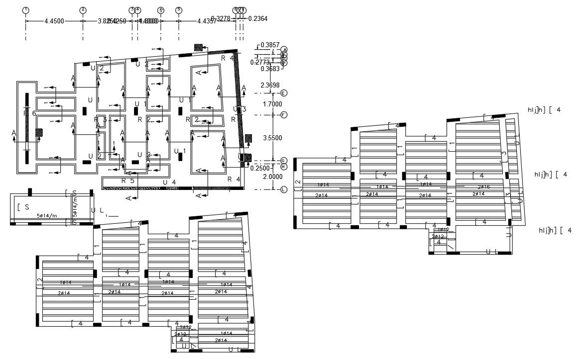 2d CAD drawing of column footing plan with excavation detail and slab reinforce bar which are supported on column and beam. download DWG file of column footing plan excavation drawing with dimension detail.