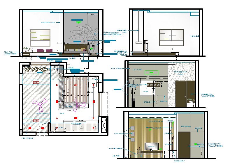 This bed room in all interior detail include wardrobe, double bed, side table, T.V unit etc.