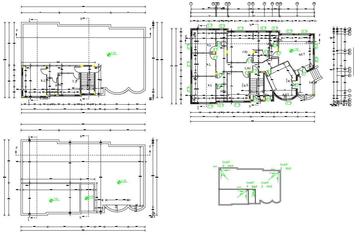 CAD Architecture House Floor Plan With Working dimension details, section line centerline plan, also structure column layout details, door details, and window details.