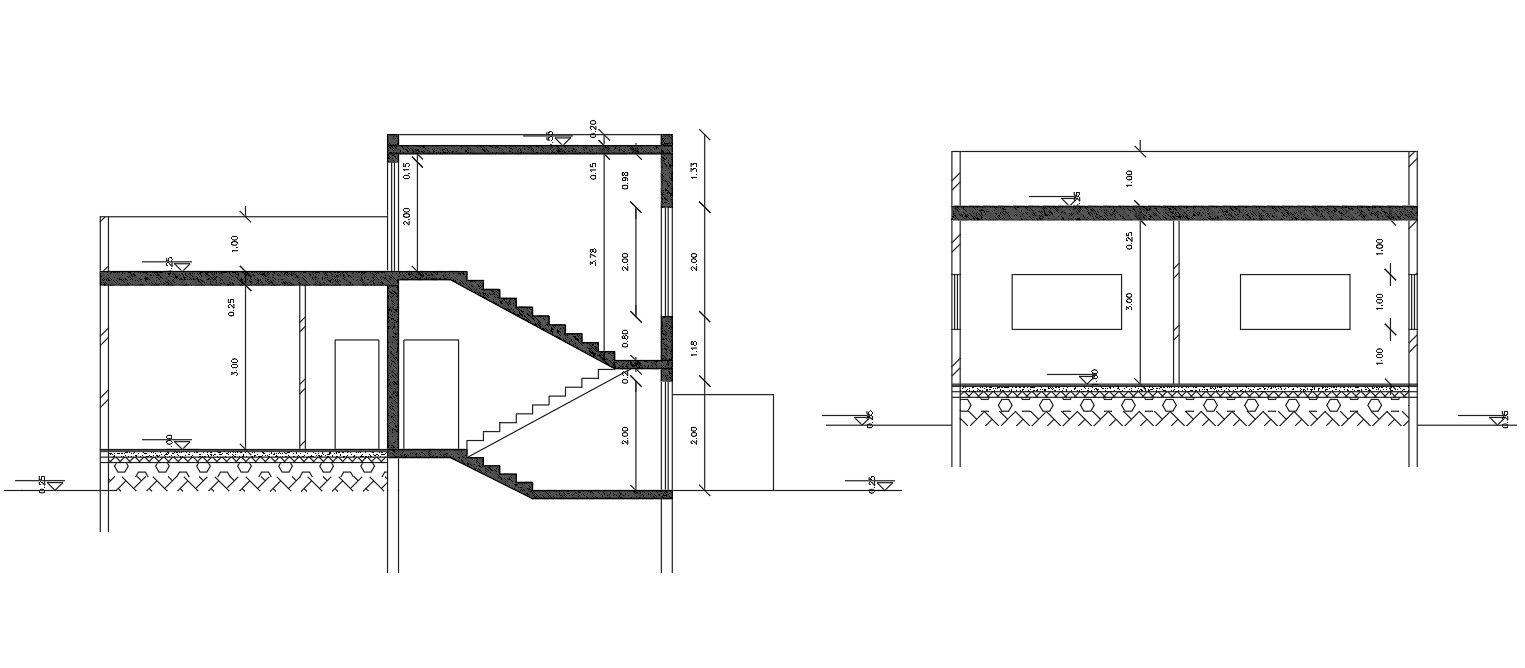 Download free AutoCAD drawing of house building section drawing that shows RCC floor, slab, and staircase with all dimension detail.