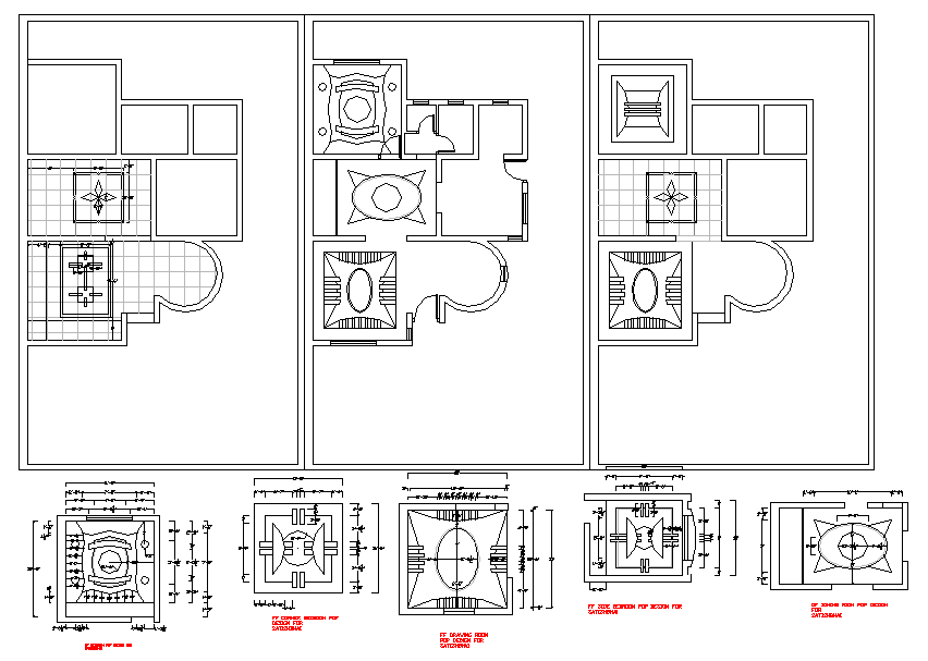 This house design in Drawing room, Bed room, Dining area, master bed room etc ceiling design include the autocad file.