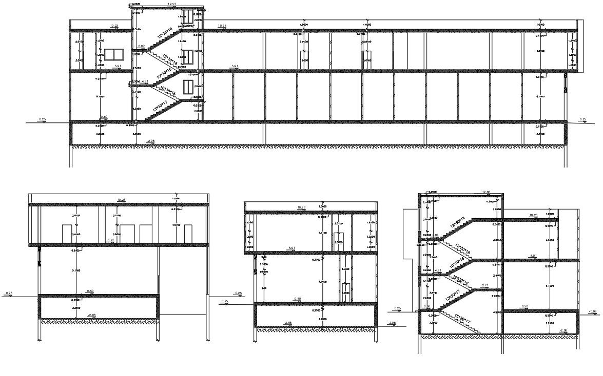 2 story commercial building drawing includes floor levels of dimension details, staircase, door, and window detail download AutoCAD file for free.