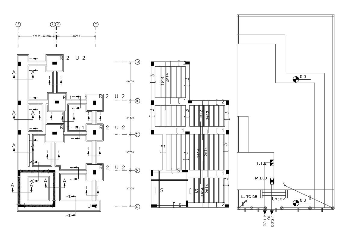 Working drawing foundation plan includes RCC slab, RCC bars, section line, centerline, foundation reinforcement details, dimension details, it downloads the drawing CAD file.