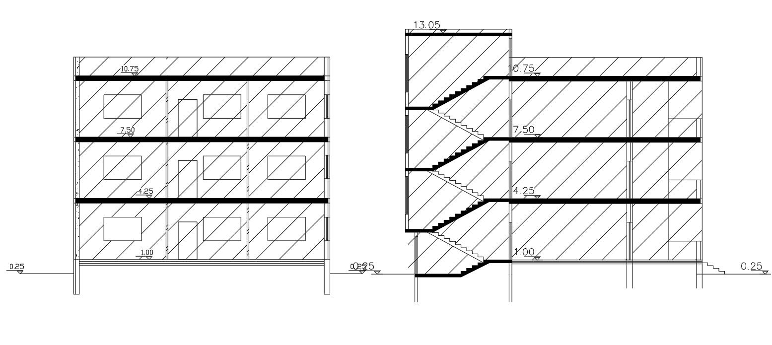 3 Floor Level House Building Section Drawing DWG File