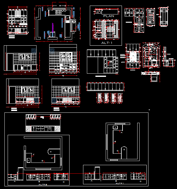 Explore this modular kitchen AutoCAD file featuring detailed CAD layouts for interior design, furniture arrangement, and modern kitchen space planning.