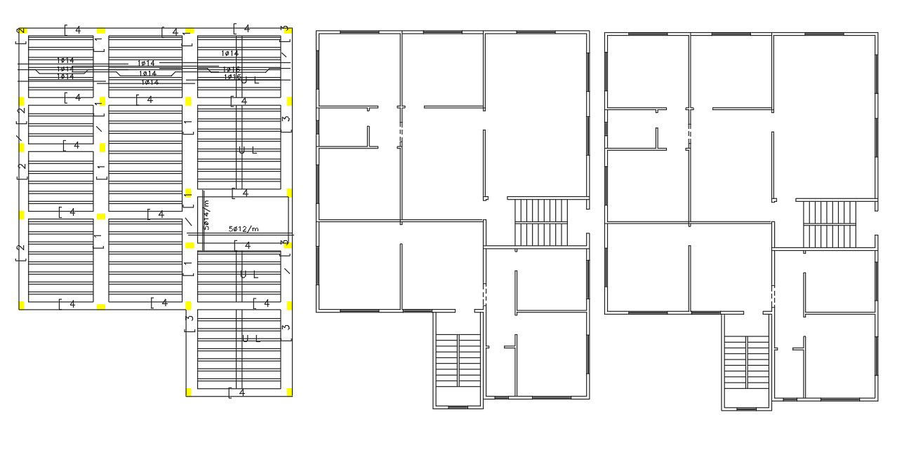 2d CAD drawing of house floor plan design DWG file includes RCC slab bar structure design and 4 bedroom house plan drawing. download simple house plan free CAD drawing DWG file.
