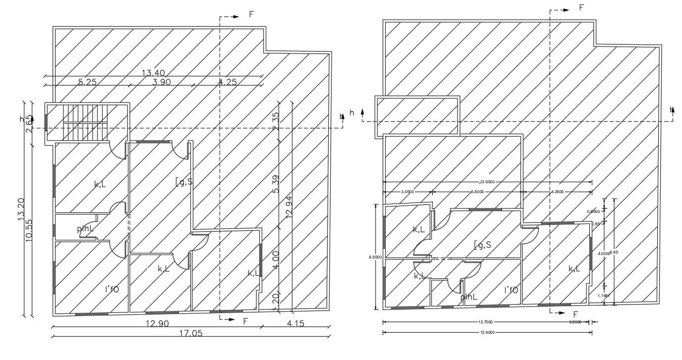 The architecture house plan includes doors and windows details, section line, dimension details, staircase, hatching, and floor plan. download DWG file.
