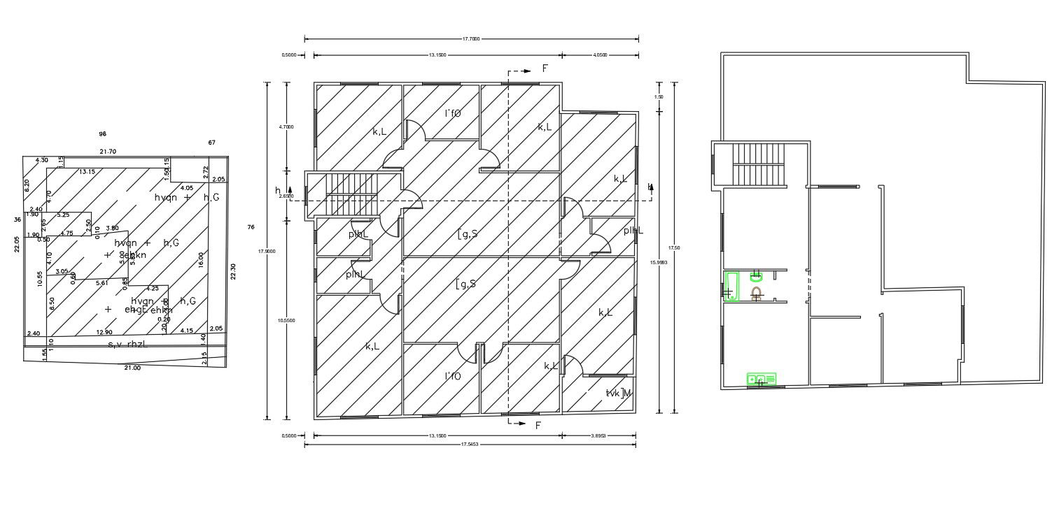 A simple drawing includes floor plan, section line with dimension, hatching, staircase, dimension details, doors, and windows details. download the AutoCAD format file.