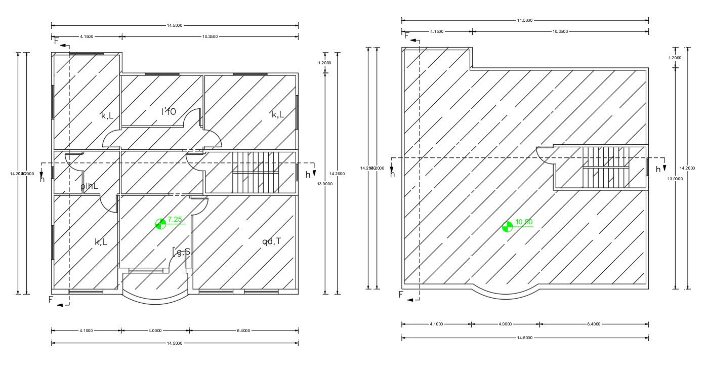 The architecture floor plan layout includes details of doors and windows, staircase, section line with dimension details and hatching. download floor layout DWG file.