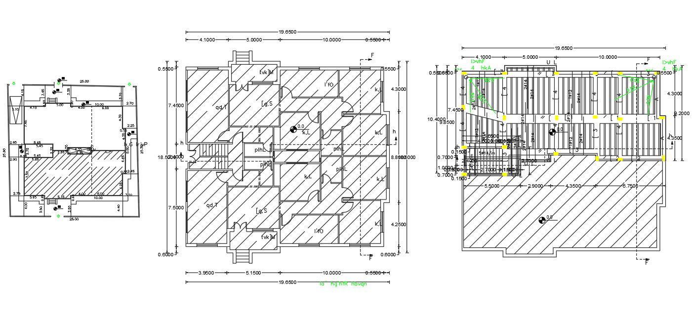 The architecture drawing layout provides details of reinforced bar, stirrup bar details, section line with dimension, hatching, column and beam details, and other details. download the AutoCAD file.