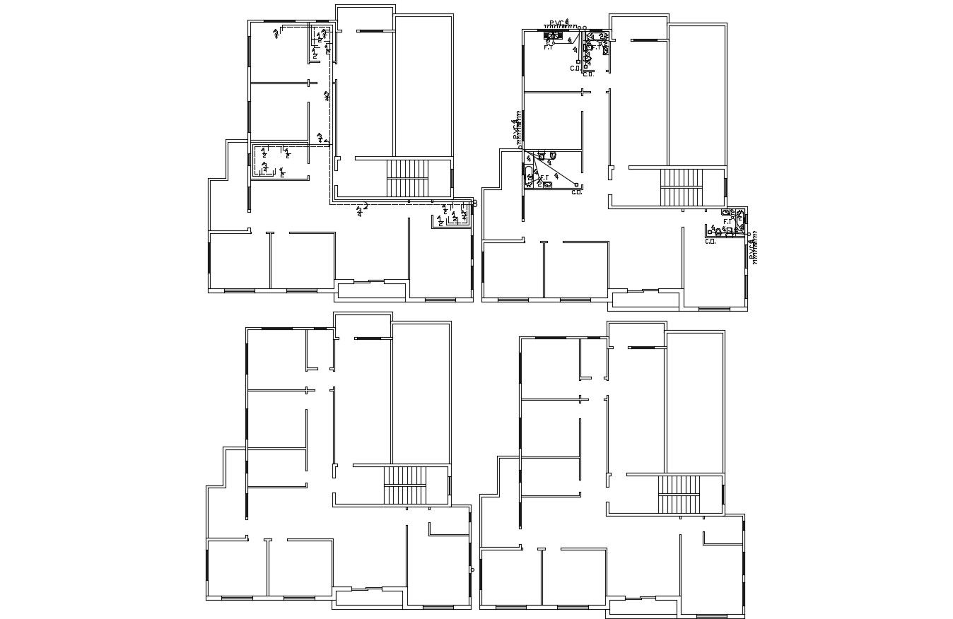 An architectural drawing shows the details of the floor plan, doors and windows details, sewage line, drainage line, water pipe, and more details. download the CAD file.