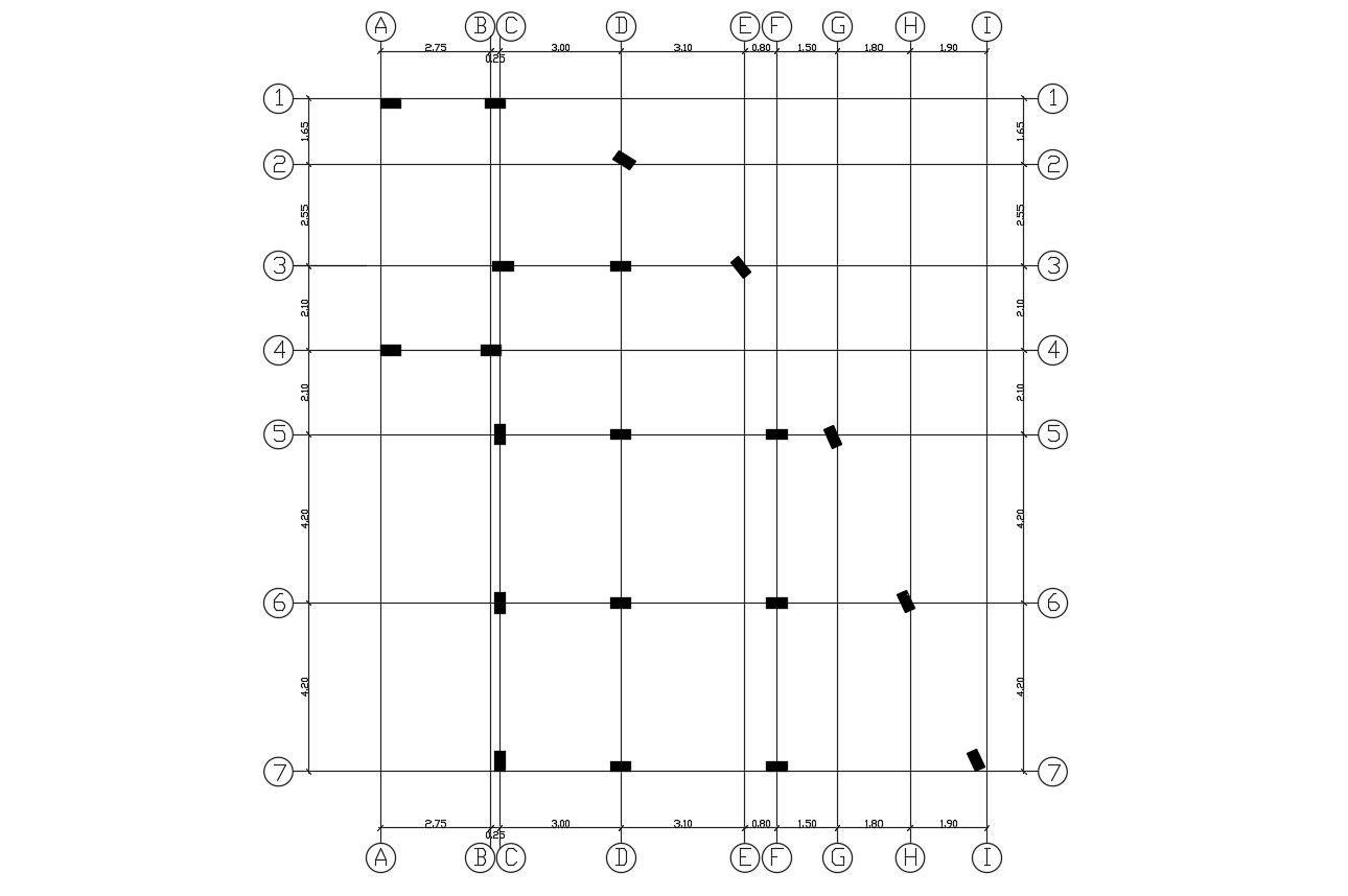 Architecture drawing column plan includes centerline, columns details also has dimension details. free download this drawing small house plan design.