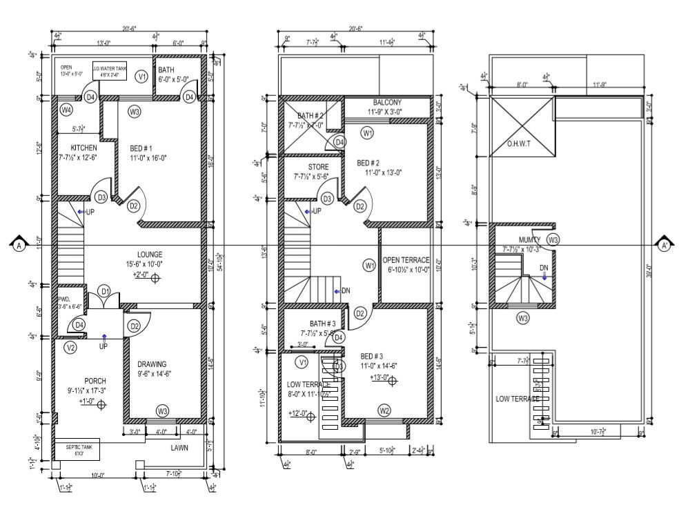This is a detailed 2D drawings of a large house with a ground floor and the first-floor plan with all fixes and furniture. download 2 by 54 feet House plan design PDF file.