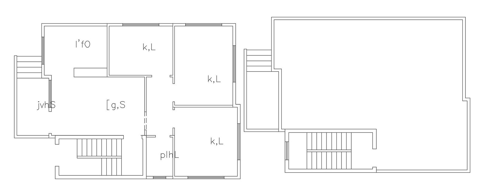 Residential drawing ground floor and terrace floor plan include bedrooms, living area, washroom, toilet, staircase, and kitchen. free download DWG of floor plan.
