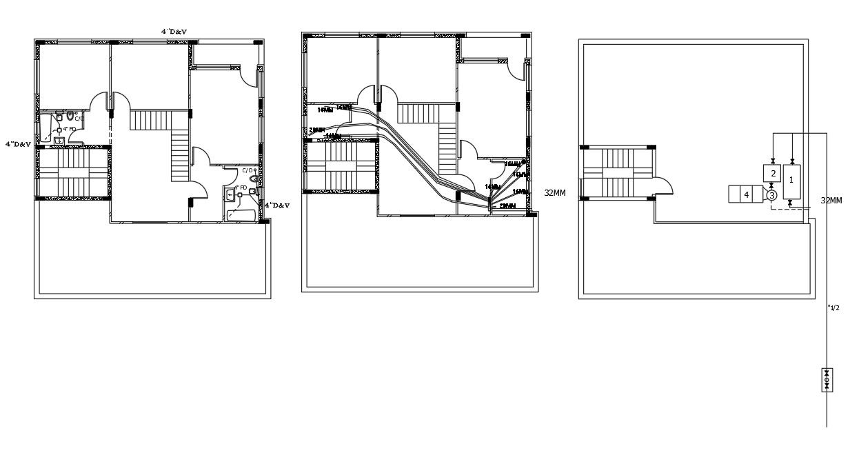 2 BHK House Plumbing Layout Plan DWG File