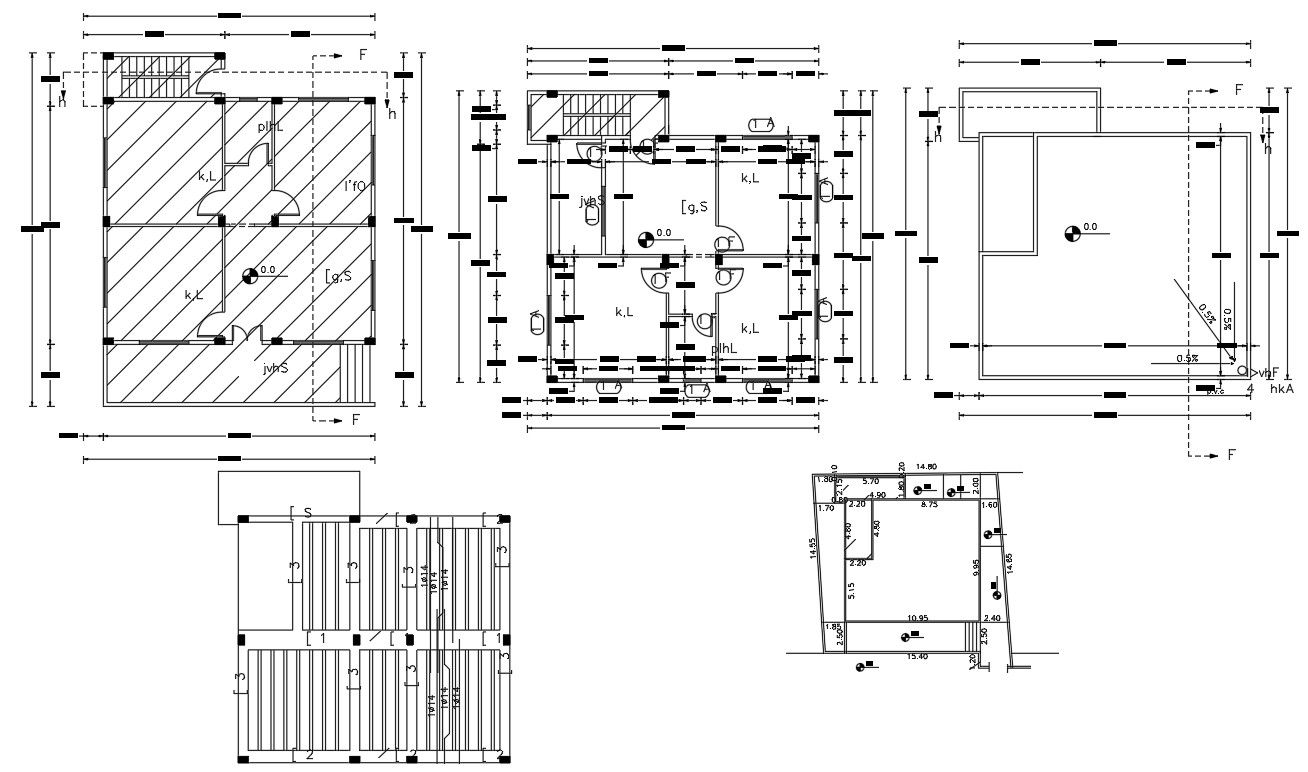28 by 32 feet plot size of 5 bedroom house floor plan AutoCAD drawing includes ground floor and first-floor layout plan with column plan and slab bar structure design. download DWG file of house building construction plan design.
