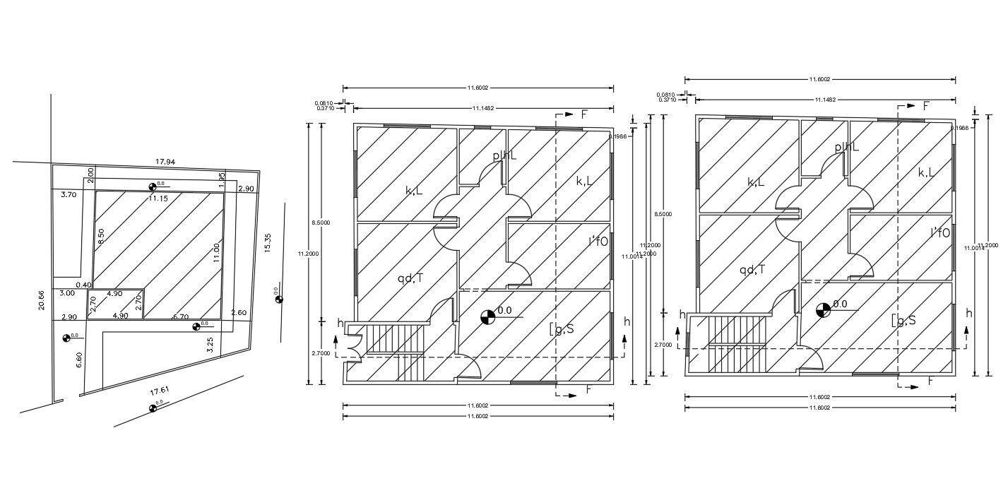 2 bedroom house ground floor plan CAD drawing includes 1250 SQFT plot size and compound boundary wall design with margin dimension detail. download this DWG house floor plan and use this plan for your stable plot size.