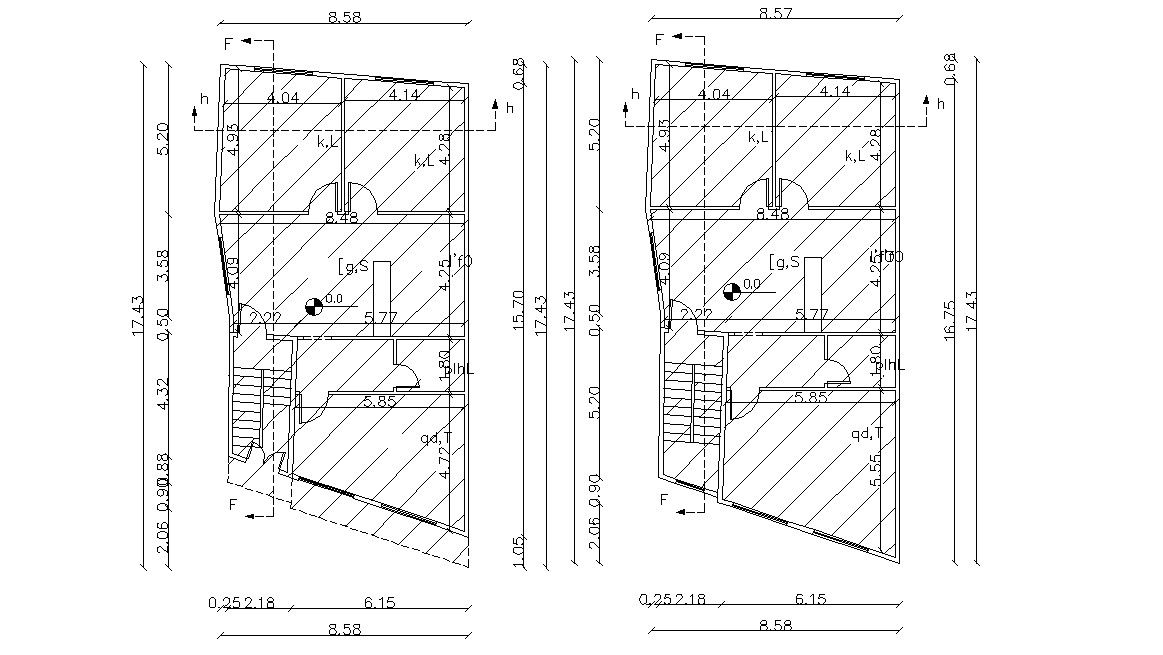 architectural planning of residential building design with working drawing dimension details.it's a to floor plans of house building design, section line on this plan and other more details in it.