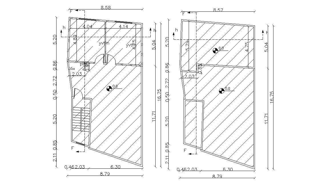 two floors plan of residential building design with working drawing dimension details, some hatching design in plan, in terrace plan make two rooms and stair cabin. download this AutoCAD drawing.