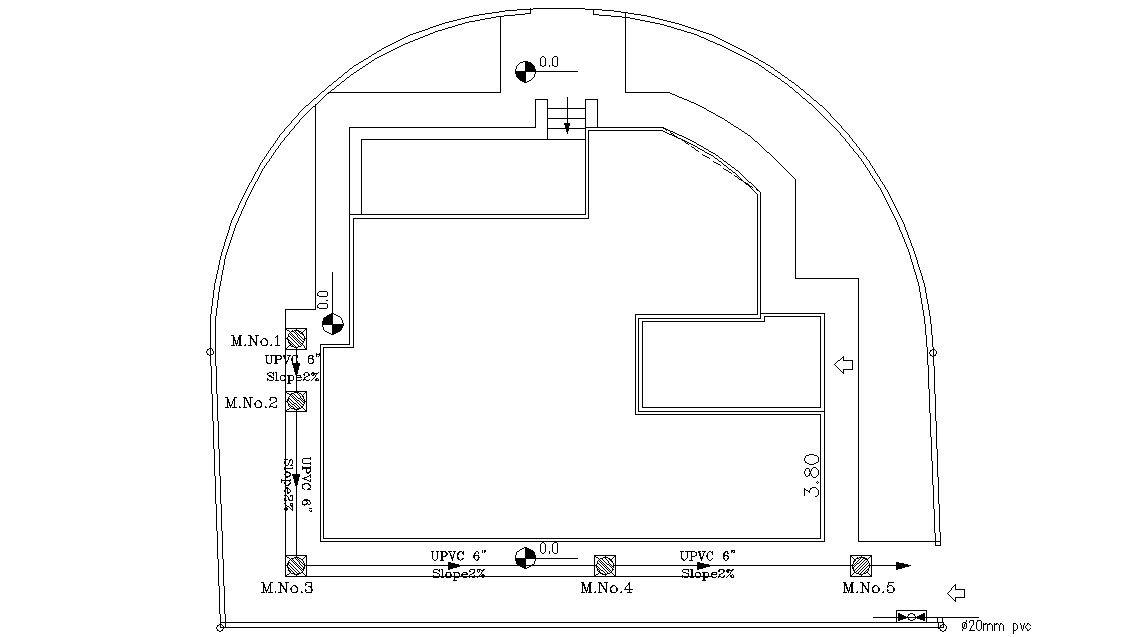 this is the simple drawing of survey related plot and building demarcation details, with manhole marking, compound wall details, free download