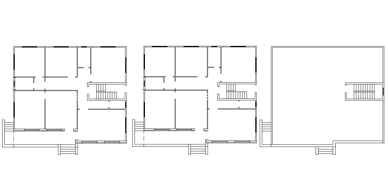 Three Floor Plans of Huge Bungalow Layout DWG Drawing