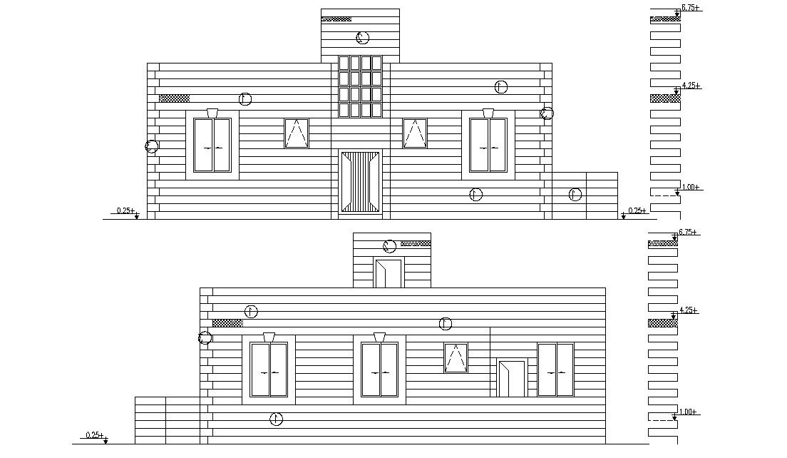 Two Elevation Of Modern Bungalow Design AutoCAD File