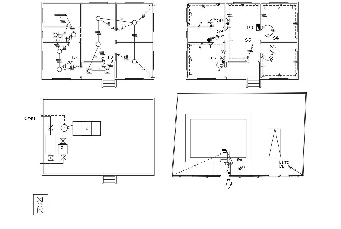 AutoCAD house floor plan CAD drawing includes electrical layout plan design shows ceiling point and wiring plan design. download free DWG file of house electrical AutoCAD drawing.
