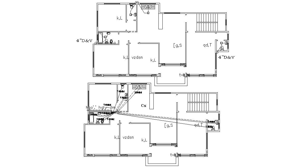 Download Two Floors Plumbing Design Of House DWG Drawing
