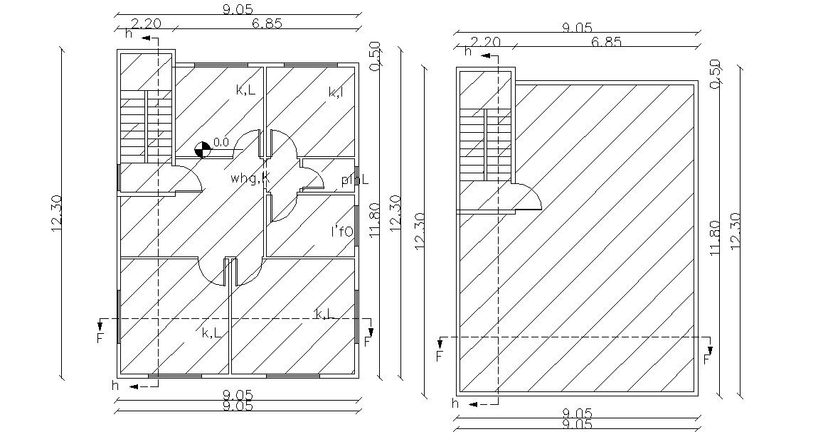 this is the drawing of residential building design with terrace floor plan, working drawing dimension details, some hatching design in plan, in this drawing, added stair with foyer, drawing room, bedrooms, kitchen, toilets, doors and windows marking in plan. download this drawing and use in related project.