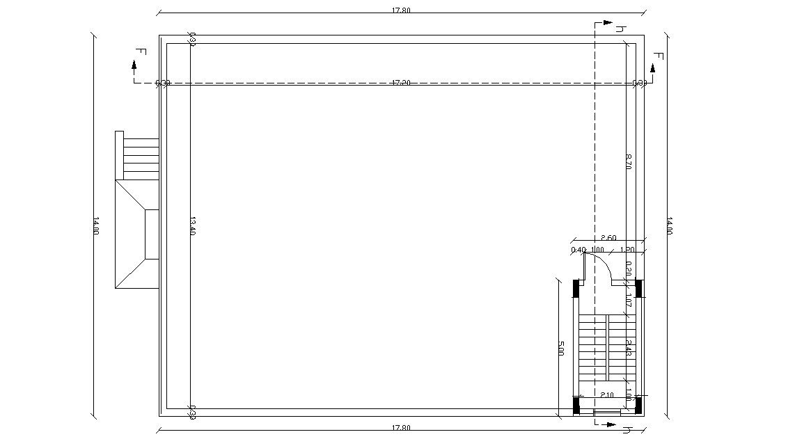 free download this drawing which is related to house terrace floor plan with stair cabin. also added structural column marking in the cabin. working drawing dimension, section line on the plan and other more details.