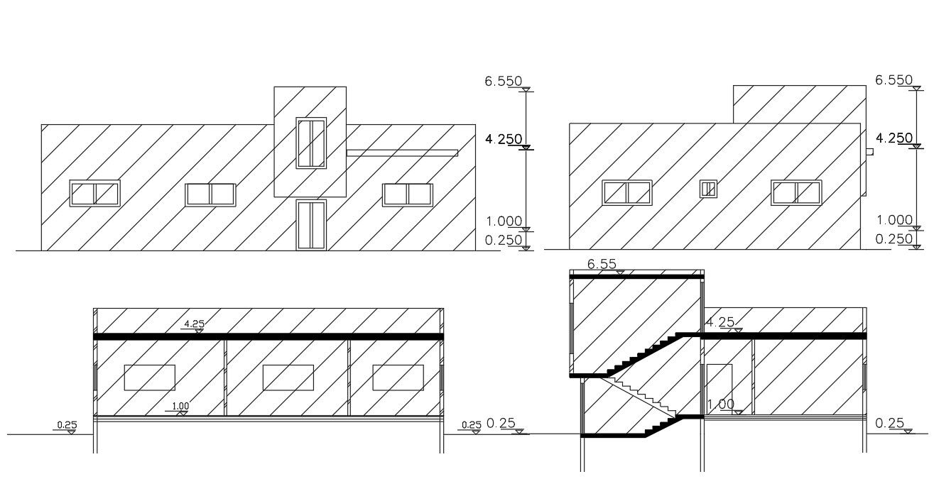 2d CAD drawing of house building sectional and elevation drawing that shows floor level detail with dimension and AutoCAD hatching design. download free DWG file of house building design.
