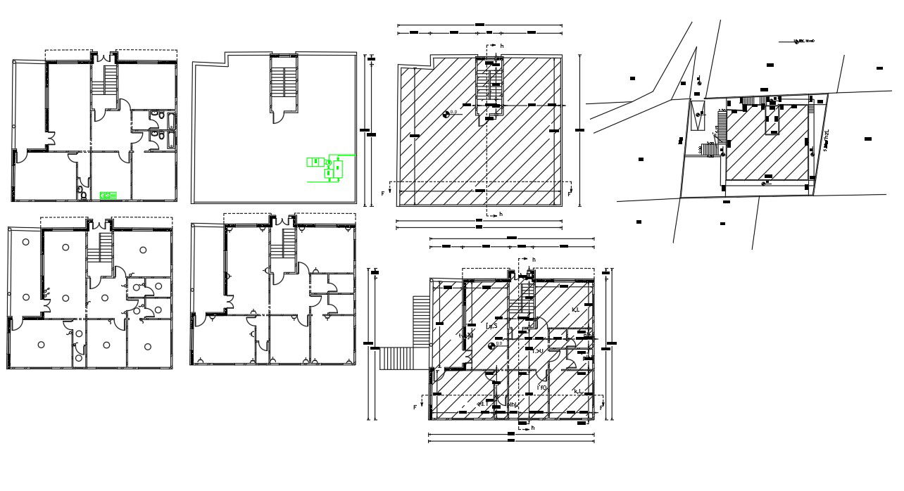 The architecture House Building floor plan design AutoCAD drawing includes ceiling electrical point and sanitary ware detail. also has a site plot plan with land survey detail AutoCAD hatching design.