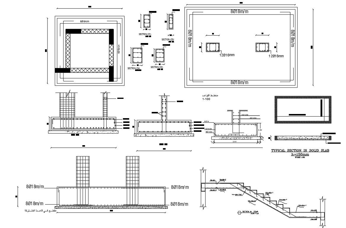 2d CAD drawing includes RCC Combined Pad Foundation Design Spreadsheets that shows comprise of concrete which area equally load on equally both column and reinforcement section detail. download Free DWG file of column footing detail.