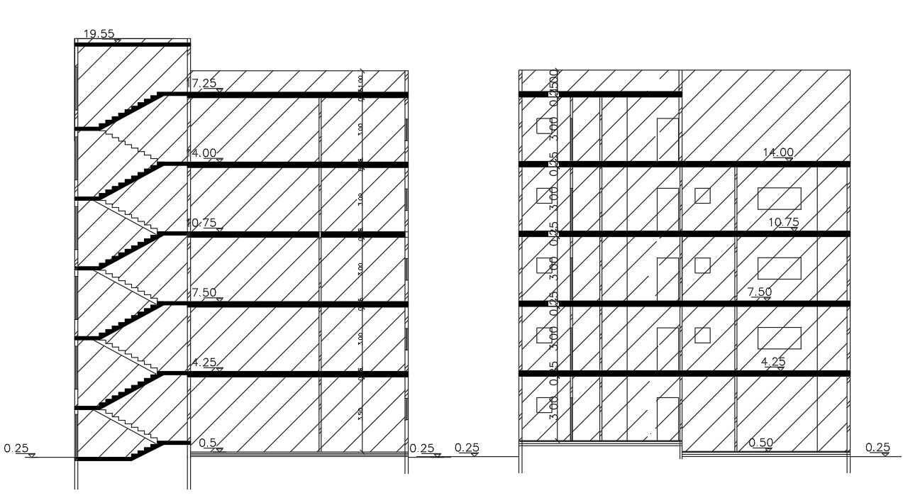 Download Free DWG file of the house building section drawing includes 5 storey apartment building design with dimension detail and RCC slab with standard staircase design.