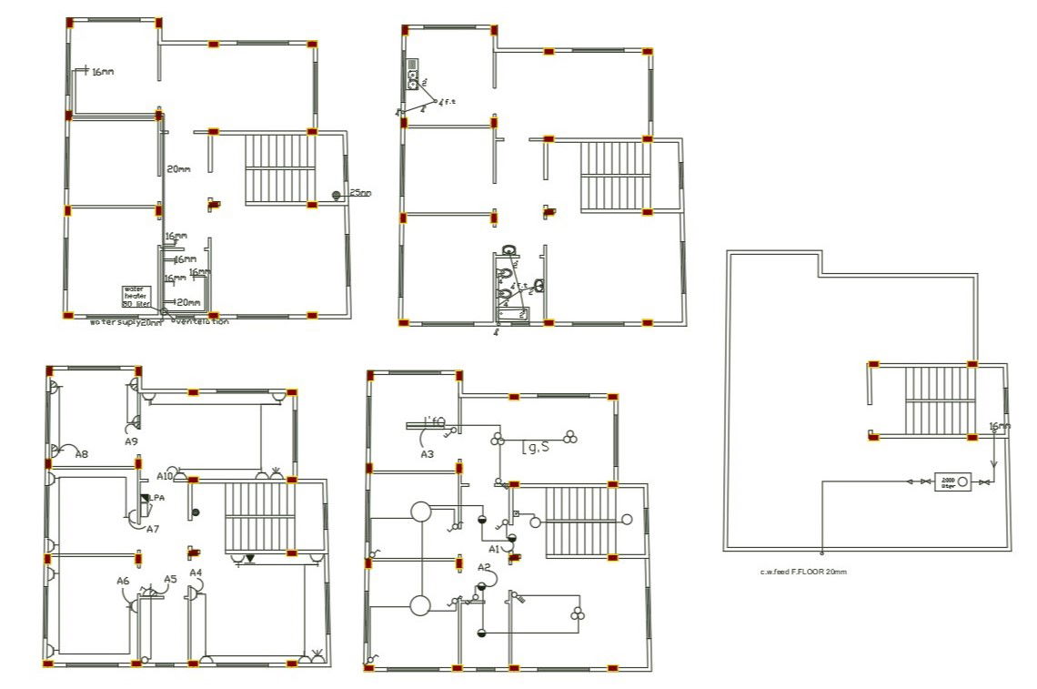 Download DWG file of House ground floor plan that shows sanitary ware detail, electrical wiring plan design, switchboard point and ceiling light point. download DWG file of house electrical layout plan.