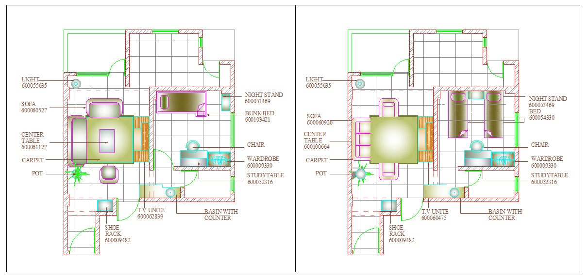 This drawing in all interior design & all furniture detail type of double bed, wardrobe, bunk bed, chair, desk,etc.