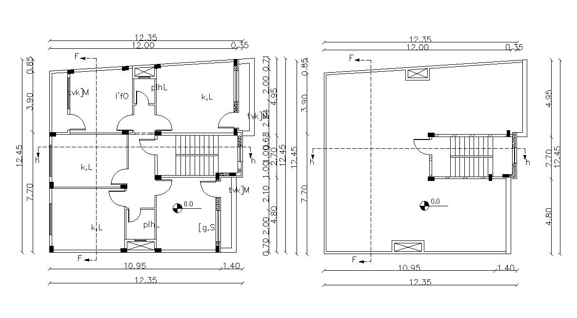 two floors plan of lavish bungalow design with terrace floor details,working drawing dimension details,structural column marking details in plan also added section line in plan free download this DWG drawing.