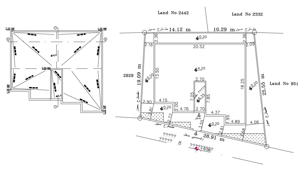 Download Free DWG file 3900 SQFT apartment plot plan with land survey detail also has terrace top view design in AutoCAD format.