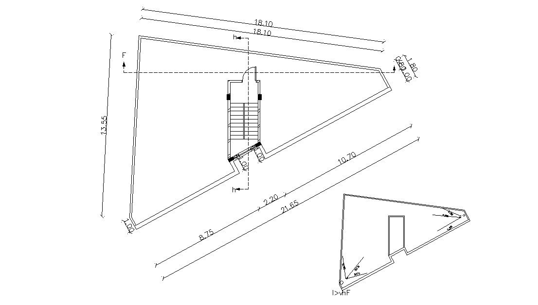 a simple plan of house terrace floor design with dimension details also added stair cabin design and section line on the plan, rainwater pipes on the terrace floor, and other more detail. free download this file.