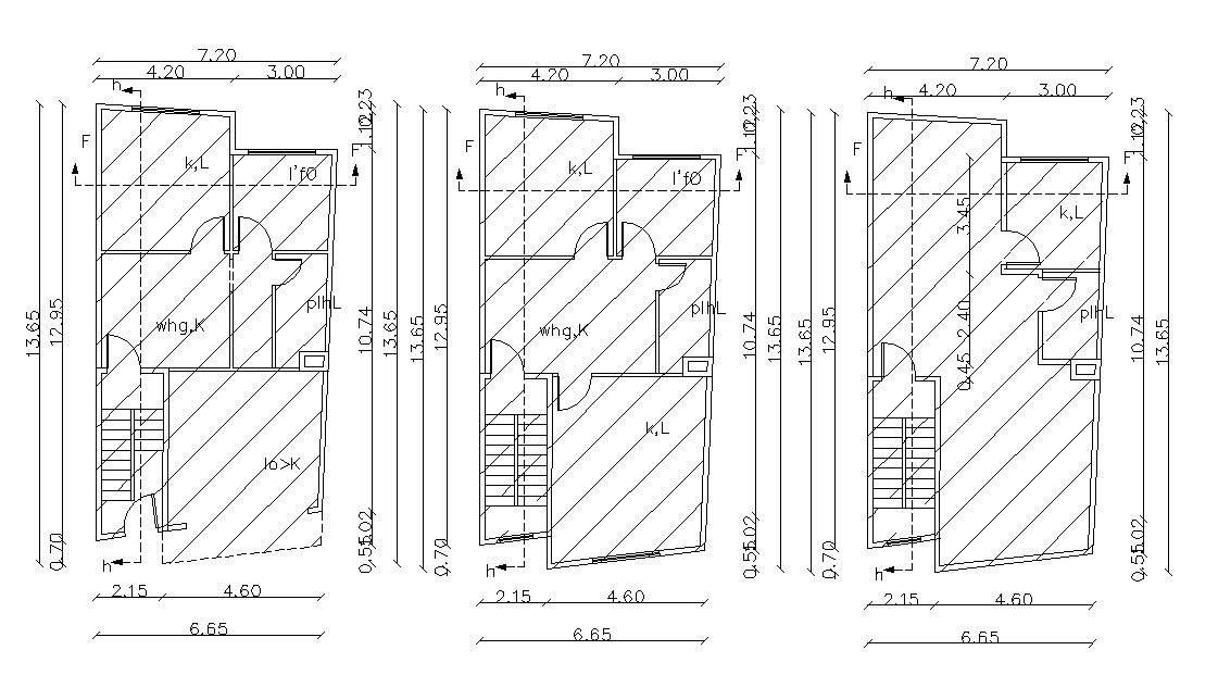 Three Floors Plan of Residential Building Design Autocad File