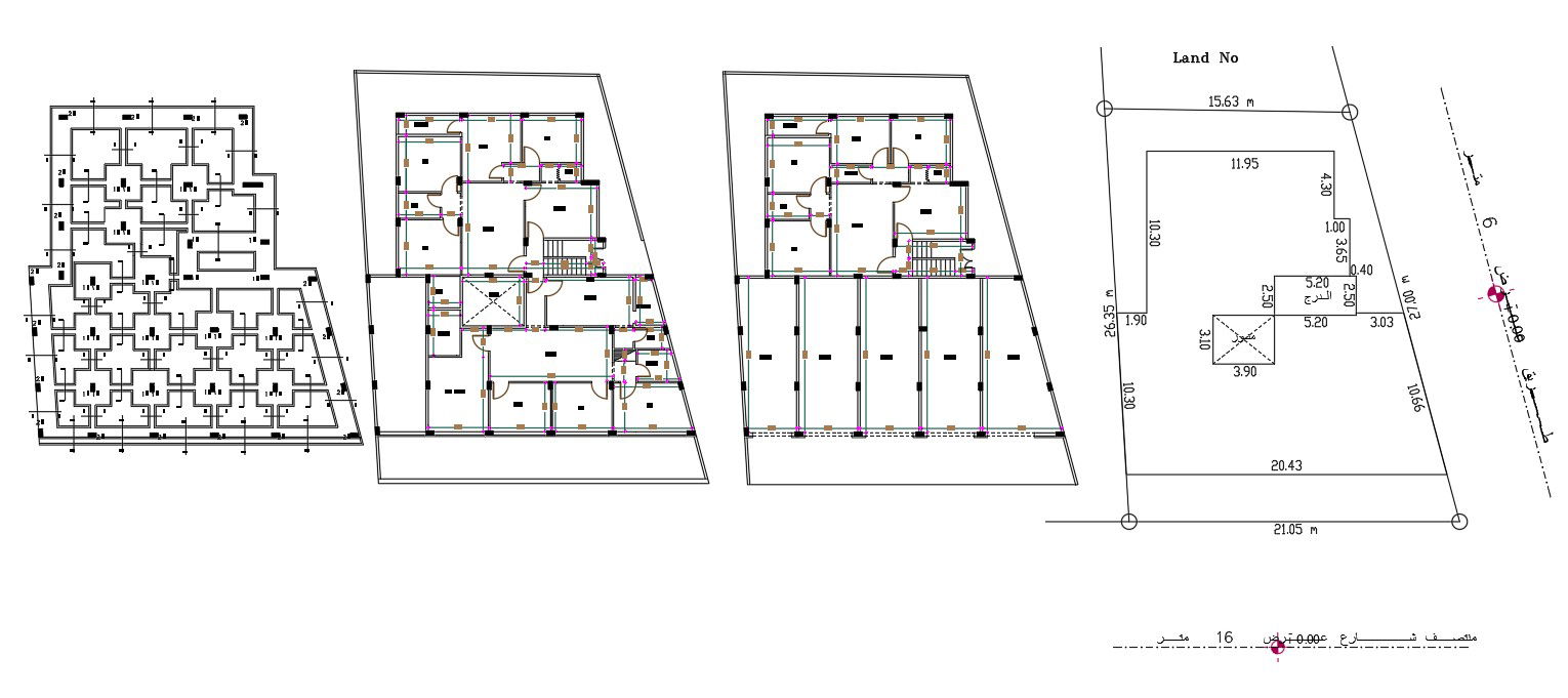 The architecture apartment working plan CAD drawing includes a foundation plan also has a ground floor shop and top floor apartment house plan design with a column layout plan and site plot with land survey. download DWG file of apartment plan design