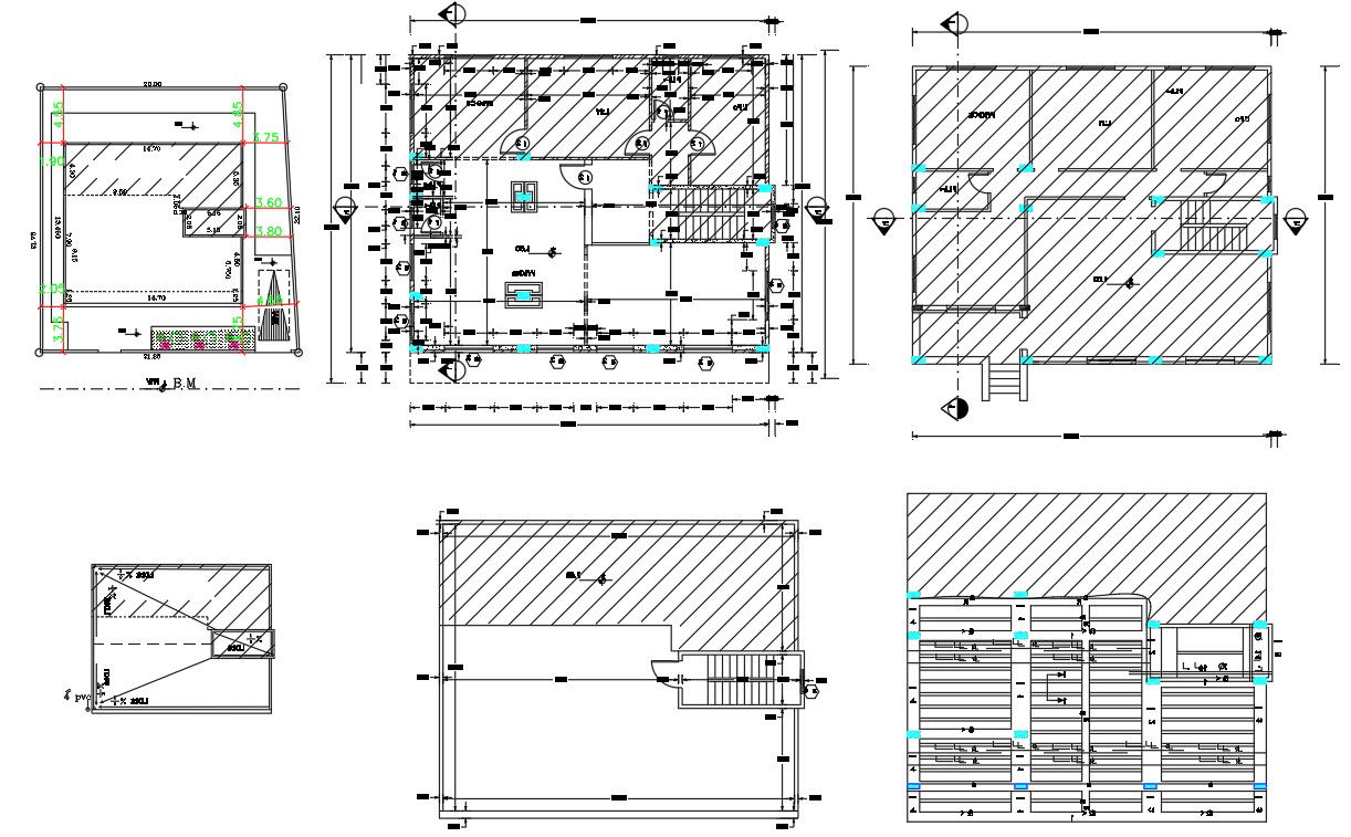 Architecture House Floor Plan For 40 X 45 Feet Plot construction working plan includes 5 BHK floor plan, a site plan with land survey and reinforcement slab bar structure design. download 1800 Square Feet and 200 Sq Yards house plan drawing DWG file.