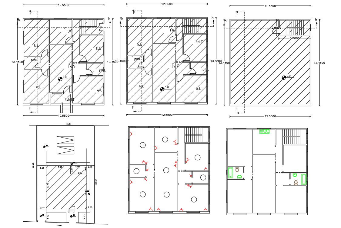 1680 square feet house plan ground floor and first-floor plan design. It’s a modern house plan which has all facilities like bedrooms with wide windows, attach baths, TV unit sitting and living room and modular kitchen design.also has electrical layout plan, sanitary ware detail and site plan with 2 big car parking spaces. download DWG file of AutoCAD house plan design.