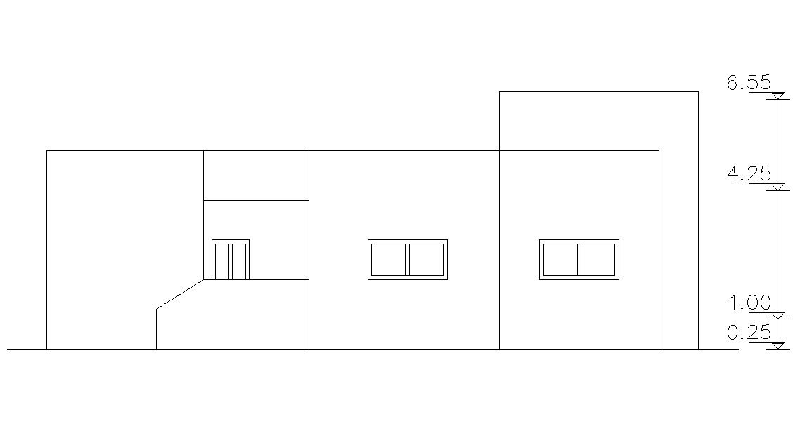 single floor house elevation design with floor levels dimension details, doors and windows Marking in elevation, its simple style elevation of home design.