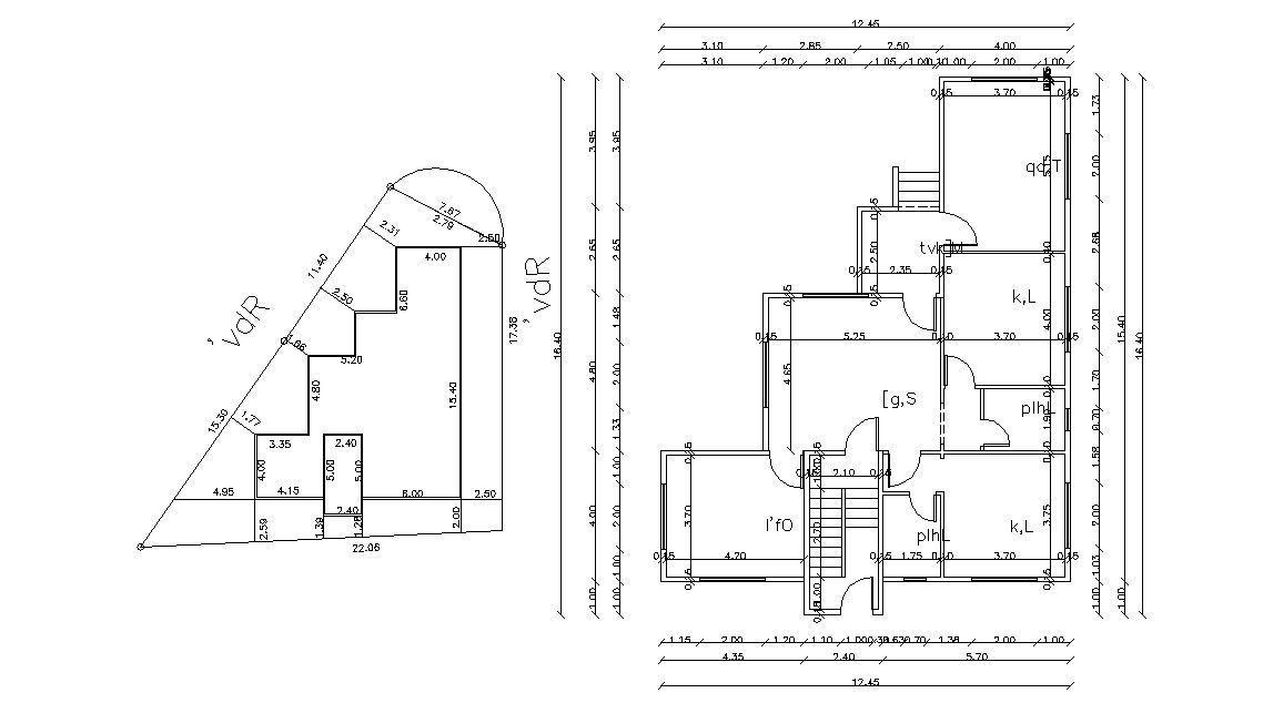 architectural modern bungalow planning with working drawing dimension details, survey plot and building demarcation details, doors and windows marking in the plan, this is the huge house design.
