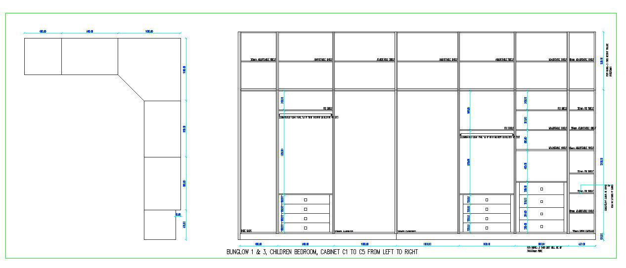 Children Bed room Furniture design in this Drawing & wardrobe Elevation & plan detail.