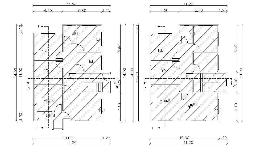 download this drawing which is related to huge residential bungalow design with working drawing dimension details, some hatching design in plan, section line on the plan, doors, and windows marking in the plan, in this planning added main foyer, drawing room, kitchen, bedrooms, stair with foyer and other more functions.