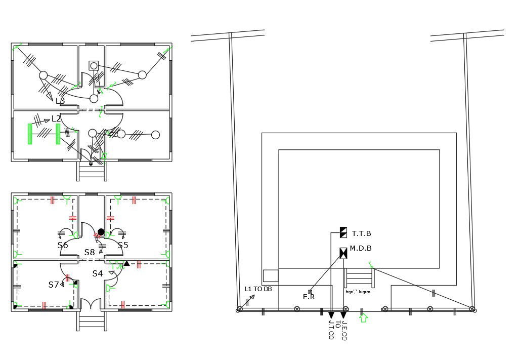 Download free DWG file of house electrical layout plan drawing includes wiring plan, ceiling point and switchboard point in AutoCAD format.
