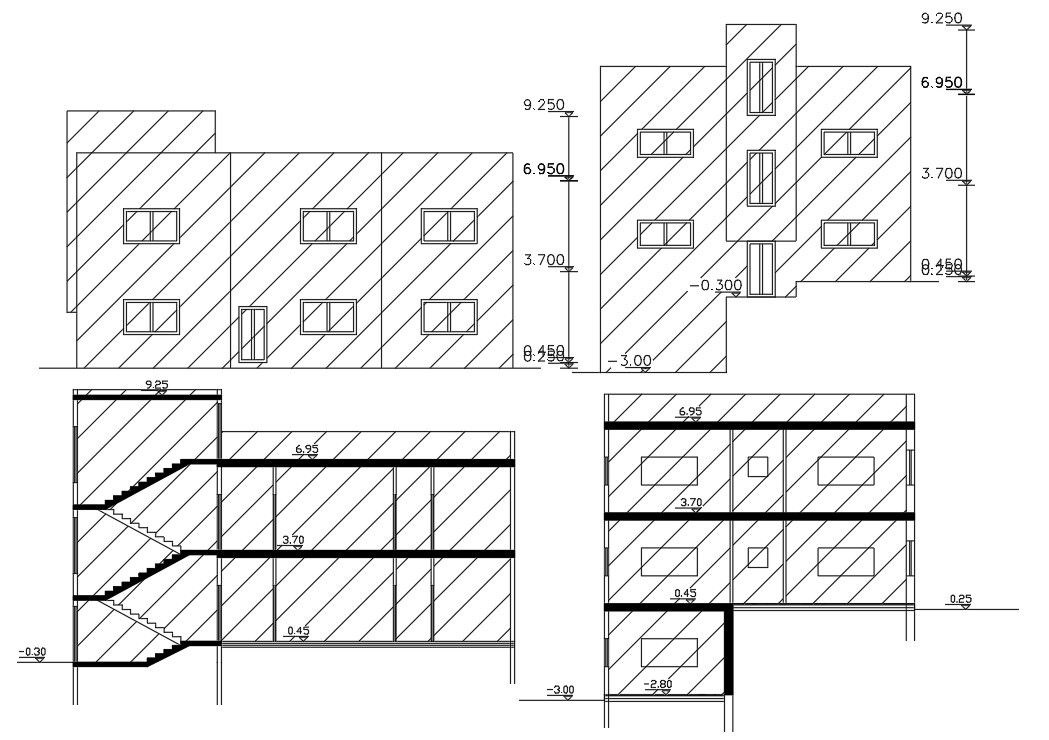 Download DWG file of house building section and elevation design AutoCAD drawing that shows floor level with dimension detail. download and can easily edit the file building design DWG file.